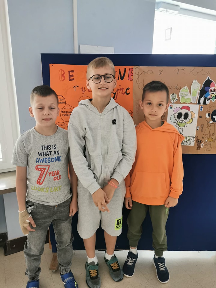 W środę 28 maja 2025r. w naszej szkole odbył się kolejny apel z cyklu Dzieci Dzieciom, którego tematem były ulubione gry komputerowe. W spotkaniu wzięły udział klasy I-III. Uczennice kl. II Nadia i Nikola jako pierwsze przedstawiły i omówiły przygotowany przez siebie plakat dotyczący gry survivalowej. Dziewczynki opowiedziały o obowiązujących regułach pokonywania poszczególnych poziomów, jej fantastycznym świecie oraz barwnych kreskówkowych postaciach. Wyszczególniły wartości edukacyjne takie jak nabywanie i rozwijanie kreatywności, spostrzegawczości, szybkości działania, ćwiczeniach pamięci, nauki języka angielskiego. Drugą z kolei prezentacją była gra ulubiona przez chłopców Olka, Mateusza i Antka pozwalająca budować konstrukcje w świecie złożonym z bloków. Chłopcy na swoim plakacie wynienili jeszcze inne jej zalety: nabywanie umiejętności współpracy, pomysłowych rozwiązań, logicznego i przestrzennego myślenia, samodzielnego podejmowania decyzji, uczenia się podstaw programowania. Temat był niezwykle interesujący, gdyż w trakcie zajęć można było zauważyć, że wśród dzieci jest wielu miłośników tych gier. Podsumowaniem zajęć był film przygotowany przez pedagoga szkolnego ukazujący, że gry mogą być zarówno wspaniałą rozrywką i źródłem wiedzy, ale także zagrożeń wynikających z nadmiernego spędzania czasu przed ekranem komputera mogącym w efekcie prowadzić do uzależnienia. Doświadczenia głównego bohatera filmu skłoniły uczniów do refleksji, że grając w gry komputerowe należy pamiętać o ustalonych zasadach i zdrowych nawykach tj. zawsze pod opieką i kontrolą rodziców, przestrzegając ograniczonego limitu czasu, właściwego doboru gier odpowiednich do wieku dziecka, które zapewnią równowagę między grą, a innymi aktywnościami.